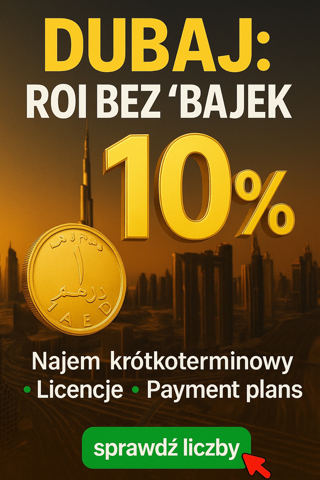 Realne ROI w Dubaju to gra o detale operacyjne i koszty nieoczywiste. Najem długoterminowy daje dziś przewidywalne ~4–6% netto, a dobrze prowadzony krótkoterminowy ~5–8% netto w wybranych miejscach. Service charges, licencje i jakość zarządzania decydują o tym, czy będziesz po zielonej czy czerwonej stronie arkusza. Developer payment plans są narzędziem płynności, nie magicznym mnożnikiem zwrotów. Jeśli policzysz wszystko „po dorosłemu” i dopasujesz strategię do mikro-lokalizacji oraz własnej tolerancji ryzyka, Dubaj może być stabilnym, dochodowym rynkiem — ale tylko bez „bajek”.